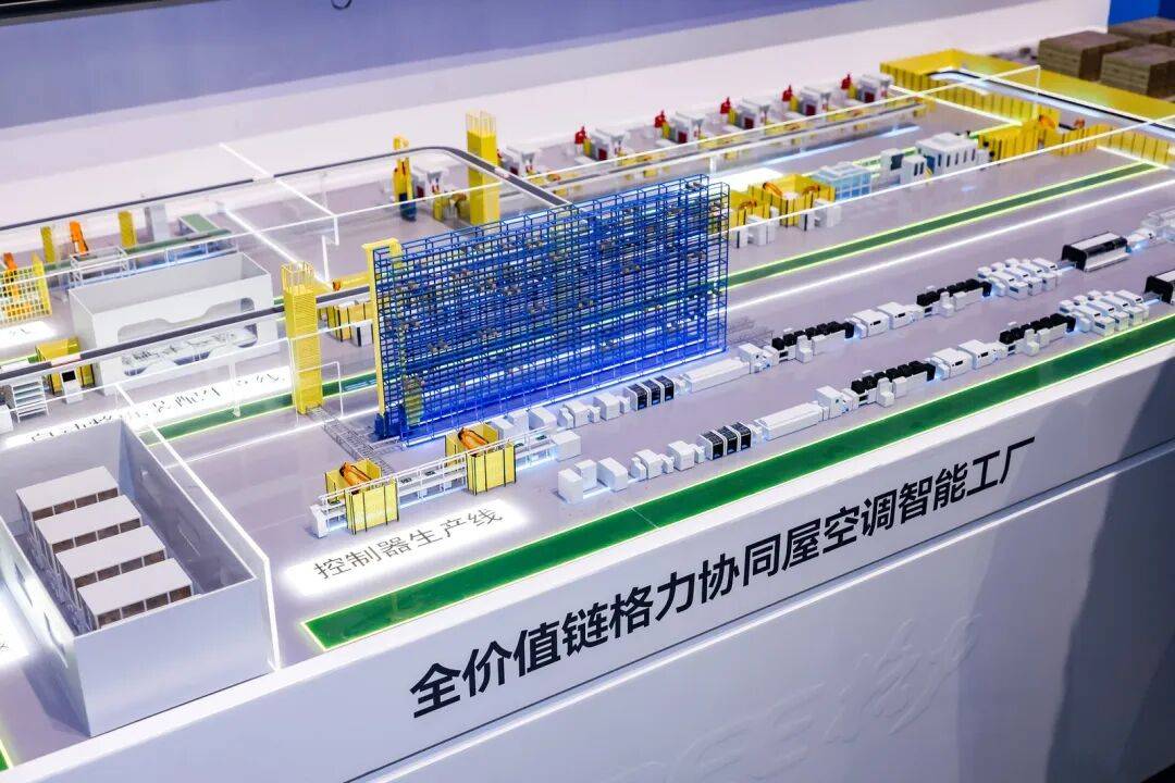 不止于核心部件,格力的生产体系也全面依托自主科技构建。在“智能制造”展区,格力的“全价值链格力协同屋空调智能工厂”项目通过沙盘生动呈现钣金、控制器、注塑、两器及总装五大智能车间的协同运作。据了解,2025年底,该项目入选全国首批“领航级”智能工厂,成为家电行业及广东省的唯一代表,生产效率提升200%,数字化覆盖率达100%,堪称全球家电制造业数字化转型的标杆典范。